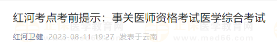 云南紅河2023臨床助理醫(yī)師筆試考生速看考場安排及注意事項!云南紅河考點官方發(fā)布了2023年醫(yī)師資格考試醫(yī)學綜合考試考前提醒,請紅河考點的考生請仔細認真查看考試時間安排、注意事項等,做好考前準備!