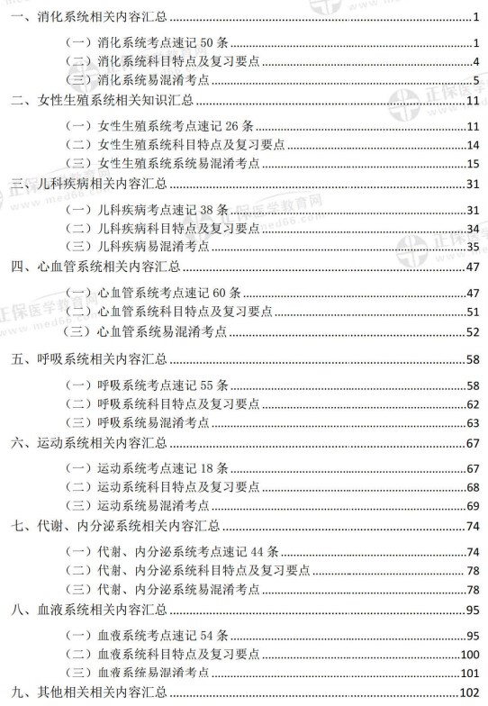 臨床醫(yī)師各科目重難點(diǎn)概括