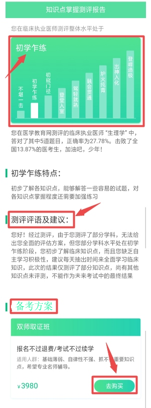 四、生成測評報告。選擇班次進(jìn)入購買。開通學(xué)習(xí)即可!