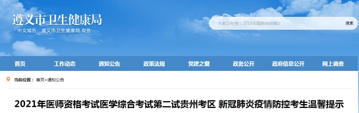 2021年臨床助理醫(yī)師資格考試遵義考點(diǎn)“一年兩試”二試防疫公告