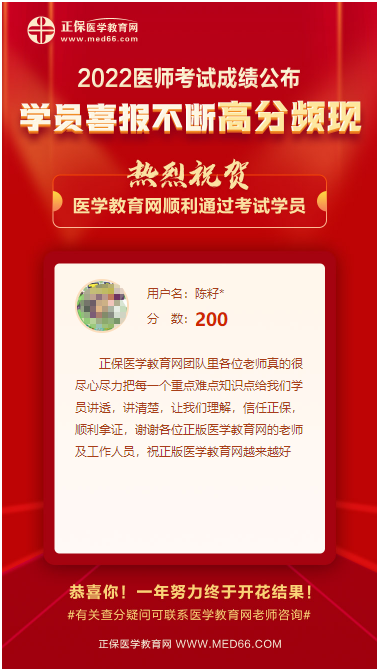 2022醫(yī)師資格考試成績終于塵埃落定,你通過了嗎?網(wǎng)校自成績公布后收到了來自全國各地學(xué)員的好評!以下來自一位通過臨床助理醫(yī)師考試學(xué)員的感謝!
