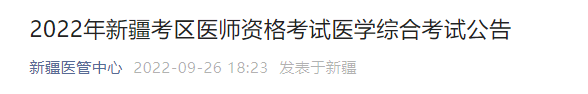 2022年新疆考區(qū)醫(yī)師資格考試醫(yī)學(xué)綜合考試公告