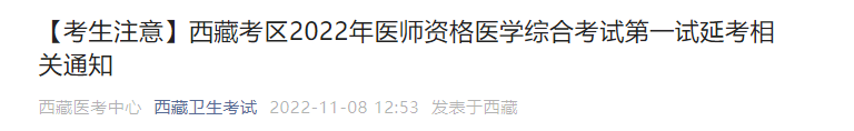 【考生注意】西藏考區(qū)2022年醫(yī)師資格醫(yī)學(xué)綜合考試第一試延考相關(guān)通知