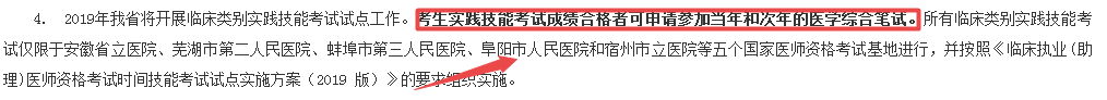 回答:在安徽2019年醫(yī)師現(xiàn)場審核公告中提到,臨床技能新三站試點(diǎn)考試考試成績合格者可申請參加當(dāng)年和次年的醫(yī)學(xué)綜合筆試,也就是說成績2年有效。安徽和湖北試點(diǎn)目前公布的考試時(shí)間為6月10日-23日!