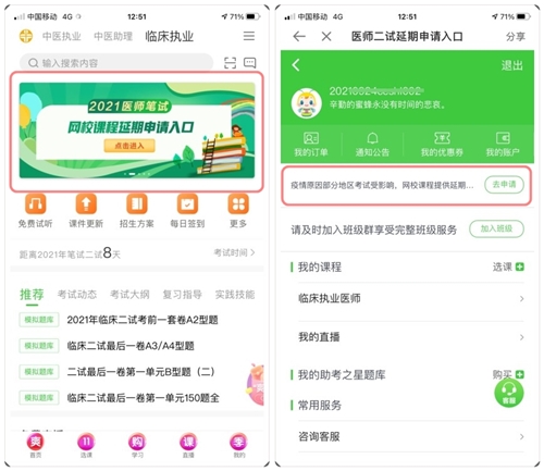 1.登錄醫(yī)學(xué)教育APP,點(diǎn)擊頂部“延期申請(qǐng)入口”的圖片,即可進(jìn)入課程延期申請(qǐng)入口:
