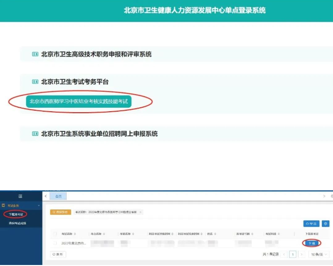 4.進入北京市西醫(yī)師學(xué)習(xí)中醫(yī)結(jié)業(yè)考核實踐技能考試平臺“下載準(zhǔn)考證”欄目中進行準(zhǔn)考證下載打印