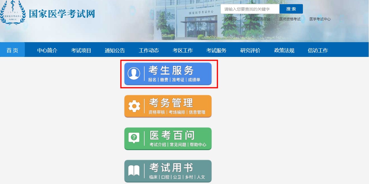 首先,打開國家醫(yī)學考試中心網(wǎng)站:http://www.nmec.org.cn