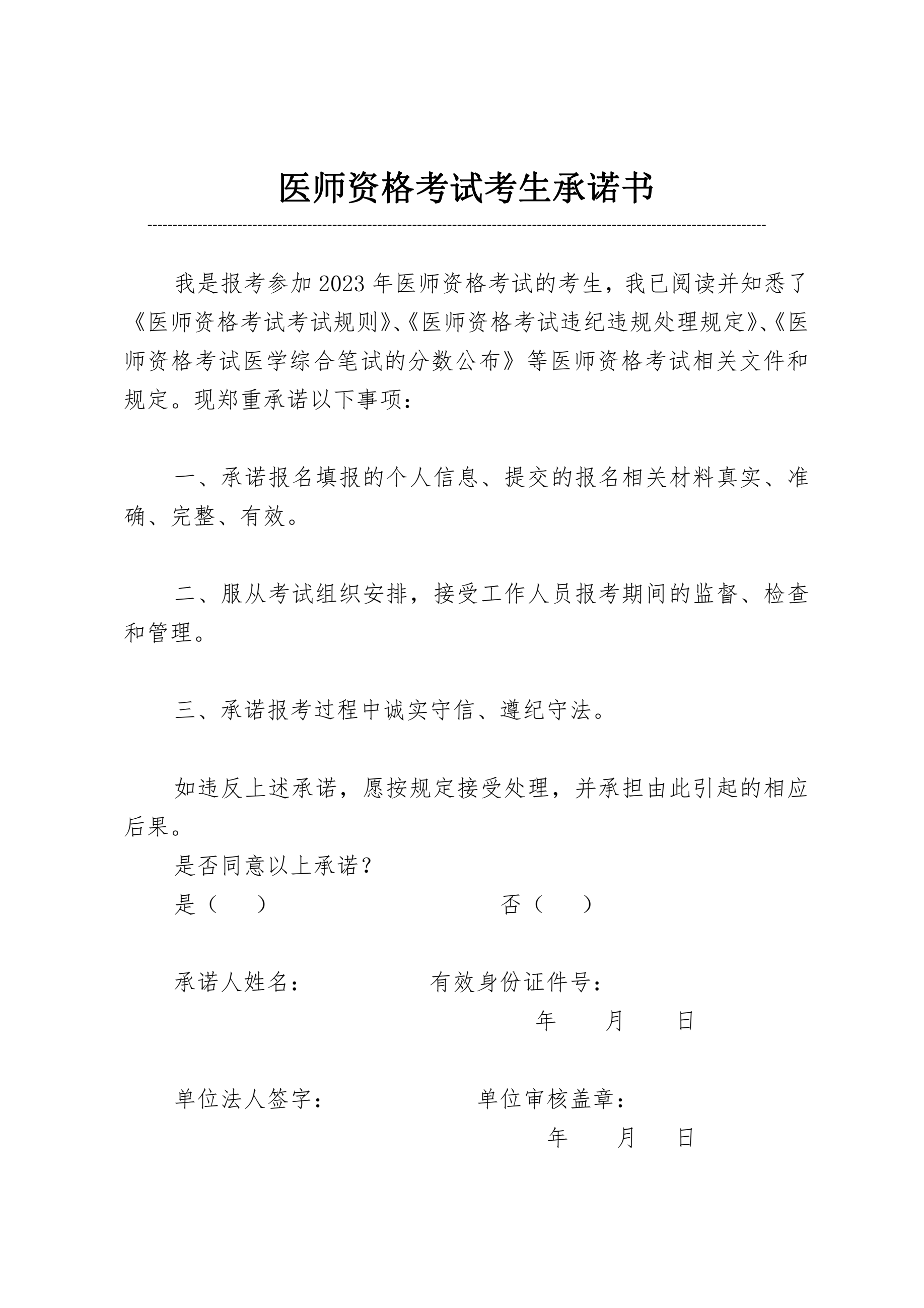 四川遂寧考點《2023年醫(yī)師資格考試考生承諾書》下載(附模板)