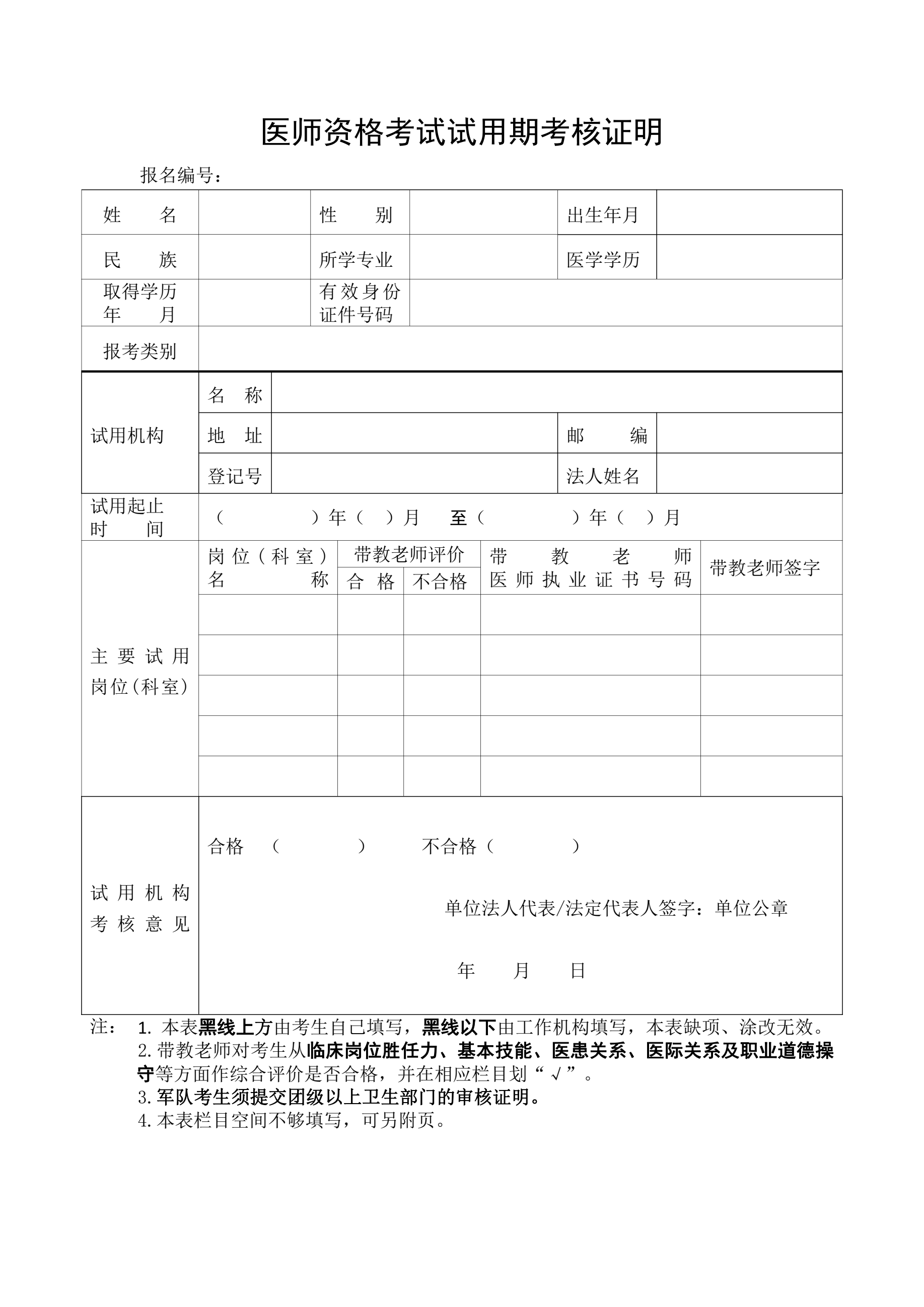 【附件下載】醫(yī)師資格考試試用期考核證明