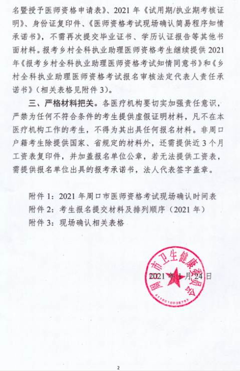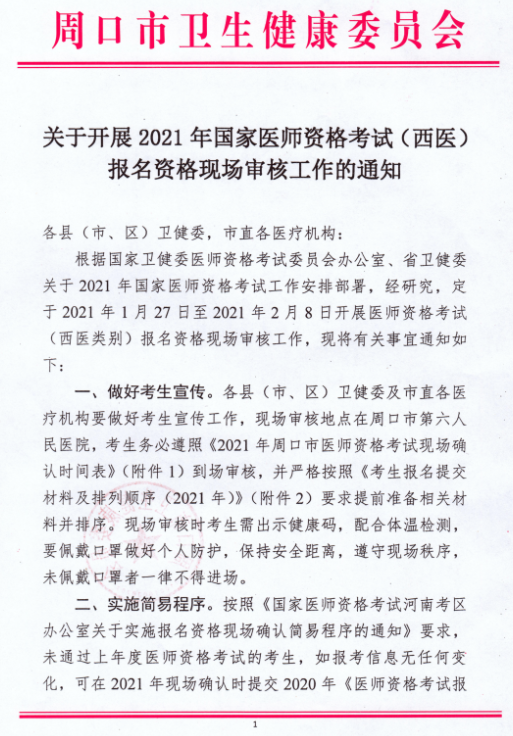 附件1:2021年周口市醫(yī)師資格考試現(xiàn)場確認時間表