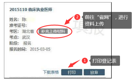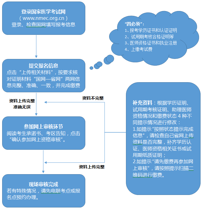 (二)未完整上傳省網(wǎng)信息的考生。網(wǎng)上現(xiàn)場審核提示為“請按狀態(tài)提示完善信息”,需依次補充所缺“試用期考核合格證明”、“學(xué)歷證明”和“助理醫(yī)師資格情況”等材料,上傳材料必須與國網(wǎng)填寫信息一致,內(nèi)容真實,圖片清晰。