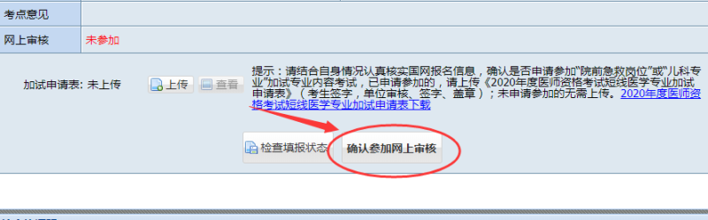 (四)加試申請。申請參加兒科和院前急救加試的考生需下載樣表后,上傳《2020年度醫(yī)師資格考試短線醫(yī)學(xué)專業(yè)加試申請表》,不參加加試人員的無需上傳。