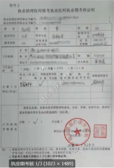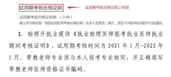 2.報考助理執(zhí)業(yè)醫(yī)師提供《試用期考核合格證明》,試用期起止時間為2021年1月-2022年1月。帶教老師專業(yè)須與本人報考專業(yè)相同,并正確填寫帶教老師醫(yī)師資格證書編碼。