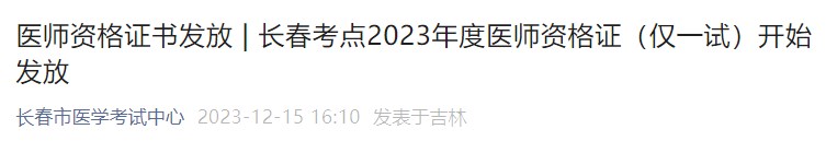 考生注意!吉林長春2023臨床助理醫(yī)師合格證書開始發(fā)放!
