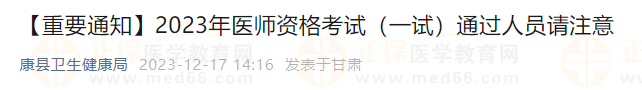 甘肅康縣【重要通知】2023年醫(yī)師資格考試(一試)通過(guò)人員請(qǐng)注意
