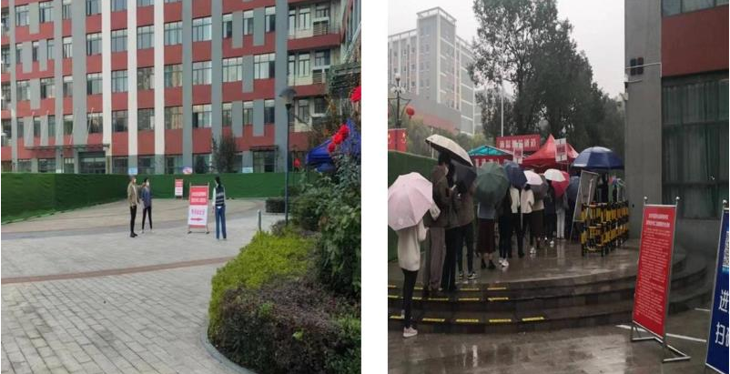 嚴(yán)格人員管理。一是精心挑選考務(wù)人員,確保身體健康,素質(zhì)過硬,考前一周無異常,考前三天進(jìn)行健康檢測。二是考前將考生數(shù)據(jù)通過公安系統(tǒng)進(jìn)行定位,及時(shí)掌握考生行程信息,考試當(dāng)天疾控人員現(xiàn)場利用數(shù)據(jù)平臺系統(tǒng)協(xié)助核查考生核酸檢測情況,精準(zhǔn)掌控考生核酸檢測數(shù)據(jù)。三是現(xiàn)場設(shè)立核酸檢測采樣點(diǎn),核酸檢測樣本專采專送,降低考試防疫風(fēng)險(xiǎn)。