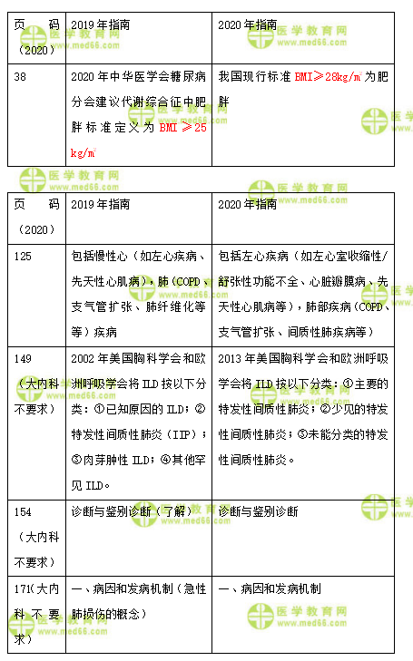 注意!2020年內(nèi)科主治應(yīng)試指南變動(dòng)部分