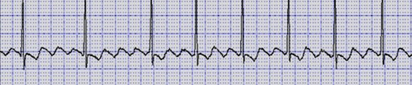 3.心電圖表示 P波消失,代之以連續(xù)、規(guī)則的、形態(tài)與振幅基本一致的鋸齒樣波,稱為F波,F(xiàn)波的頻率為250~300次/分,在Ⅱ、Ⅲ、aVF導最為明顯;QRS波群大致正常,心室律是否規(guī)則取決于房室傳導比例是否恒定。在未接受治療時,心室率一般為150次/分(2:1傳導);預激綜合征、甲亢合并心房撲動,房室傳導比例可呈1:1,則心室律可極快。