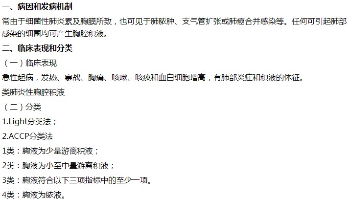 2021內(nèi)科主治醫(yī)師相關(guān)專業(yè)知識(shí)考點(diǎn)類肺炎性胸腔積液