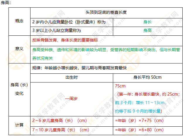 全科主治醫(yī)師《三色筆記》:兒童的身高及體重規(guī)律