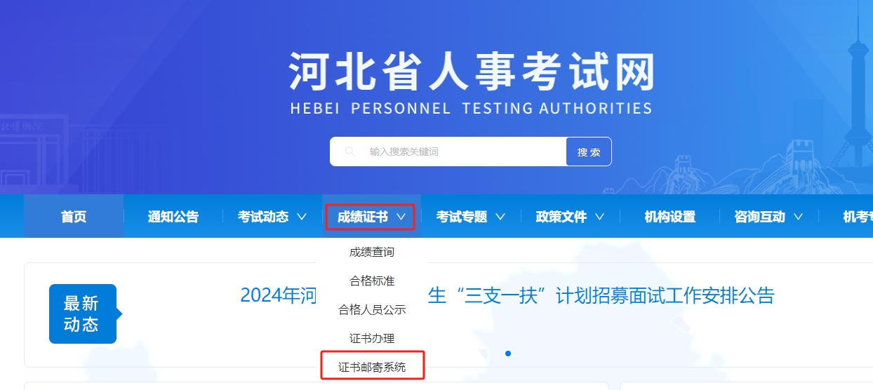 河北人事考試網(wǎng)-成績證書-證書郵寄系統(tǒng)-掃碼查詢證書-郵寄證書