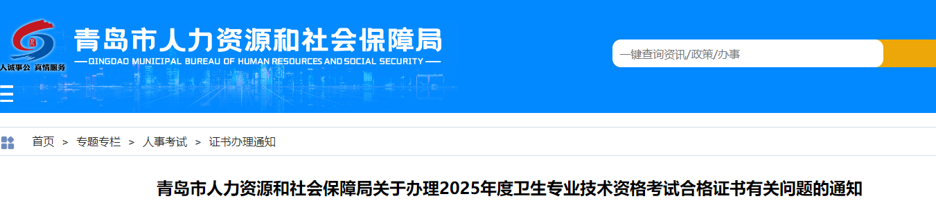 青島市2025年度內(nèi)科主治醫(yī)師考試合格證書發(fā)放通知