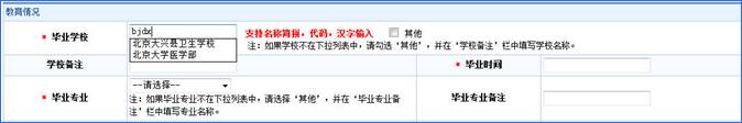 注意:在畢業(yè)學(xué)校輸入中不允許使用空格和回車鍵。