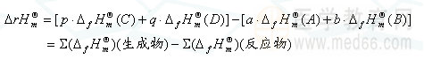 ),因此,該化學(xué)反應(yīng)的標(biāo)準(zhǔn)熱效應(yīng)等于生成物標(biāo)準(zhǔn)生成焓之和減去反應(yīng)物標(biāo)準(zhǔn)生成焓之和醫(yī)學(xué)教育網(wǎng)搜集整理。