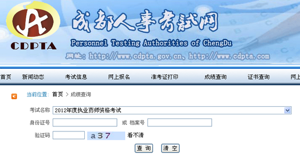 點擊鏈接或圖片進入成都市2012年執(zhí)業(yè)藥師考試成績查詢入口:http://www.cdpta.gov.cn/netpage/prepassacheive.do。
