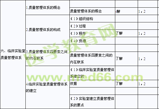 | 一、臨床實驗室的定義、作用和功能 | 1.臨床實驗室的定義 | 臨床實驗室的定義 | 了解 | 1,2 |