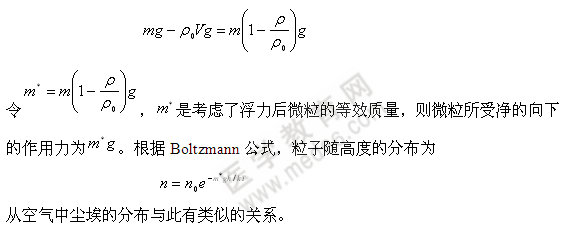 在液體中若有懸浮的微粒存在,則這些粒子受重力的影響也將隨高度不同而不同。設(shè)懸浮的微粒的密度為,質(zhì)量為,液體的,液體的體積為V,微粒周圍液體的密度為,微粒總的受的向下的作用力為