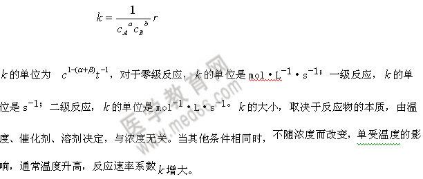 k表示在給定溫度下,各反應物濃度為單位濃度時的反應速率,表明化學反應速率相對大小。