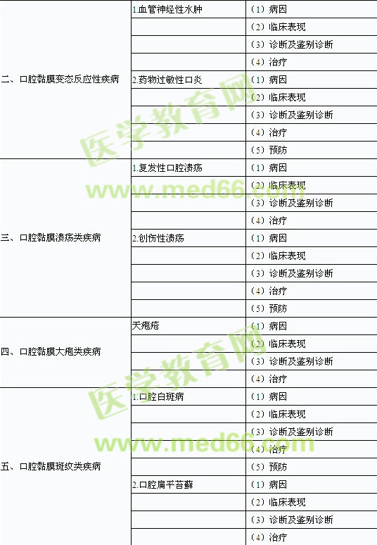 2013年口腔執(zhí)業(yè)醫(yī)師考試大綱《口腔黏膜病學(xué)》部分內(nèi)容如下: