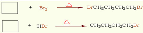 ★環(huán)丁烷在加熱條件下,也可以與鹵素或氫鹵酸發(fā)生加成反應(yīng)