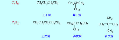 丁烷(C4H10)有兩種不同的異構(gòu)體;戊烷(C5H12)有三種異構(gòu)體。