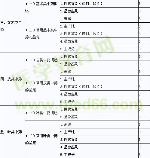 | (五)中藥質(zhì)量標(biāo)準(zhǔn)的制定 | 中藥材質(zhì)量標(biāo)準(zhǔn)的項(xiàng)目?jī)?nèi)容 | 3 | ||