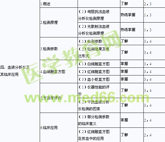 | 6.紅細(xì)胞平均指數(shù) | (1)檢測(cè)原理 | 掌握 | 1,3 | |