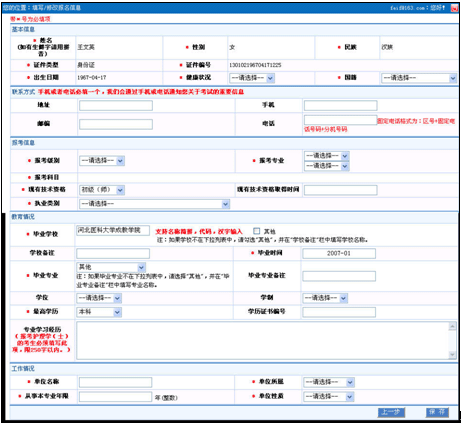 今年新報(bào)考生無需填寫上一年度的檔案號(hào),選擇“否”,點(diǎn)擊“下一步”按鈕進(jìn)入下一界面,即可填寫報(bào)名信息。見下圖: