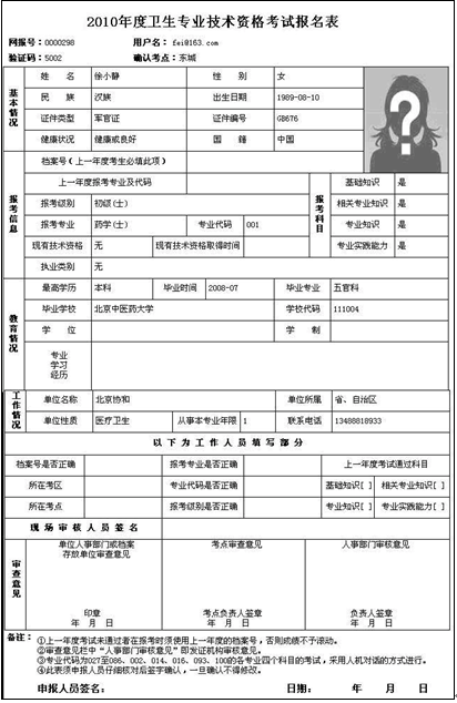 2010年度全國(guó)衛(wèi)生專業(yè)技術(shù)資格考試暨護(hù)士執(zhí)業(yè)資格考試網(wǎng)上報(bào)名系統(tǒng)填表說明