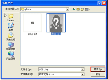 在指定路徑下選擇照片,點(diǎn)擊“打開”。見下圖:
