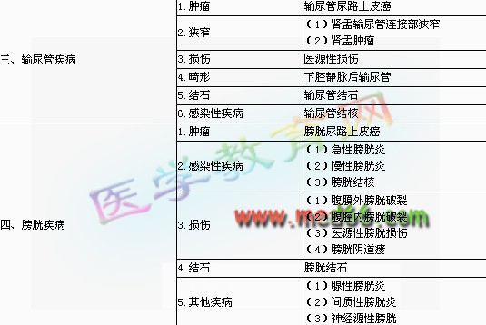 | 4.感染性疾病 | (1)尿道炎(2)淋菌性尿道炎(3)非淋菌性尿道炎 | |
