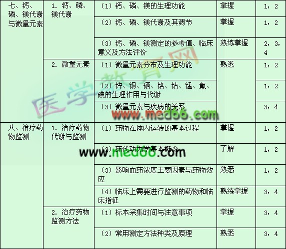 | 十四、臨床化學(xué)常用分析技術(shù) | 1.臨床化學(xué)常用分析方法 | (1)光譜分析、電泳技術(shù)、離心技術(shù)、層析技術(shù)、電化學(xué)分析技術(shù)的基本原理和應(yīng)用 | 熟悉 | 1,2 |
