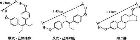 幾何異構(gòu)是由雙鍵或環(huán)的剛性或半剛性系統(tǒng)導(dǎo)致分子內(nèi)旋轉(zhuǎn)受到限制而產(chǎn)生的。由于幾何異構(gòu)體醫(yī).學(xué)教育網(wǎng)搜集整理的產(chǎn)生,導(dǎo)致藥物結(jié)構(gòu)中的某些官能團(tuán)在空間排列上的差異,不僅影響藥物的理化性質(zhì),而且也改變藥物的生理活性。例如己烯雌酚,其反式異構(gòu)體中兩個(gè)酚羥基排列的空間距離和雌二醇的二個(gè)羥基的距離近似,表現(xiàn)出與雌二醇相同醫(yī).學(xué)教育網(wǎng)搜集整理的生理活性,而順式異構(gòu)體中兩個(gè)羥基的排列距離比較短,而不具有雌激素活性。