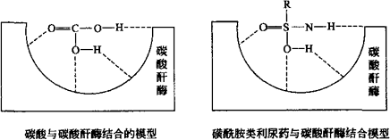 藥物與生物大分子通過氫鍵相結合的例子在藥物的作用中比比皆是,如磺酰胺類利尿藥通過氫鍵和碳酸酐酶結合,其結構位點與碳酸和碳酸酐酶的結合位點相同。