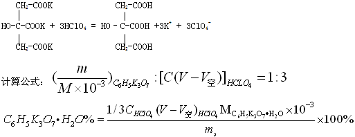 枸酸酸鉀(C6H5K3O7.H2O)的含量測(cè)定主要內(nèi)容如下: