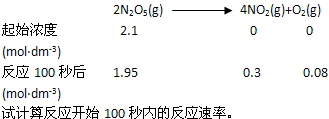 在298K下,將2.1mol·dm-3的N2O5充入一密閉容器中醫(yī)`學教育網搜集整理,分解反應中各物質濃度變化如下: