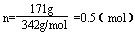 例:蔗糖的摩爾質(zhì)量=342g/mol,C12H22O11分子量=342,1升溶液(水)中溶解了171g 蔗糖,求蔗糖溶液的摩爾濃度(M)?
