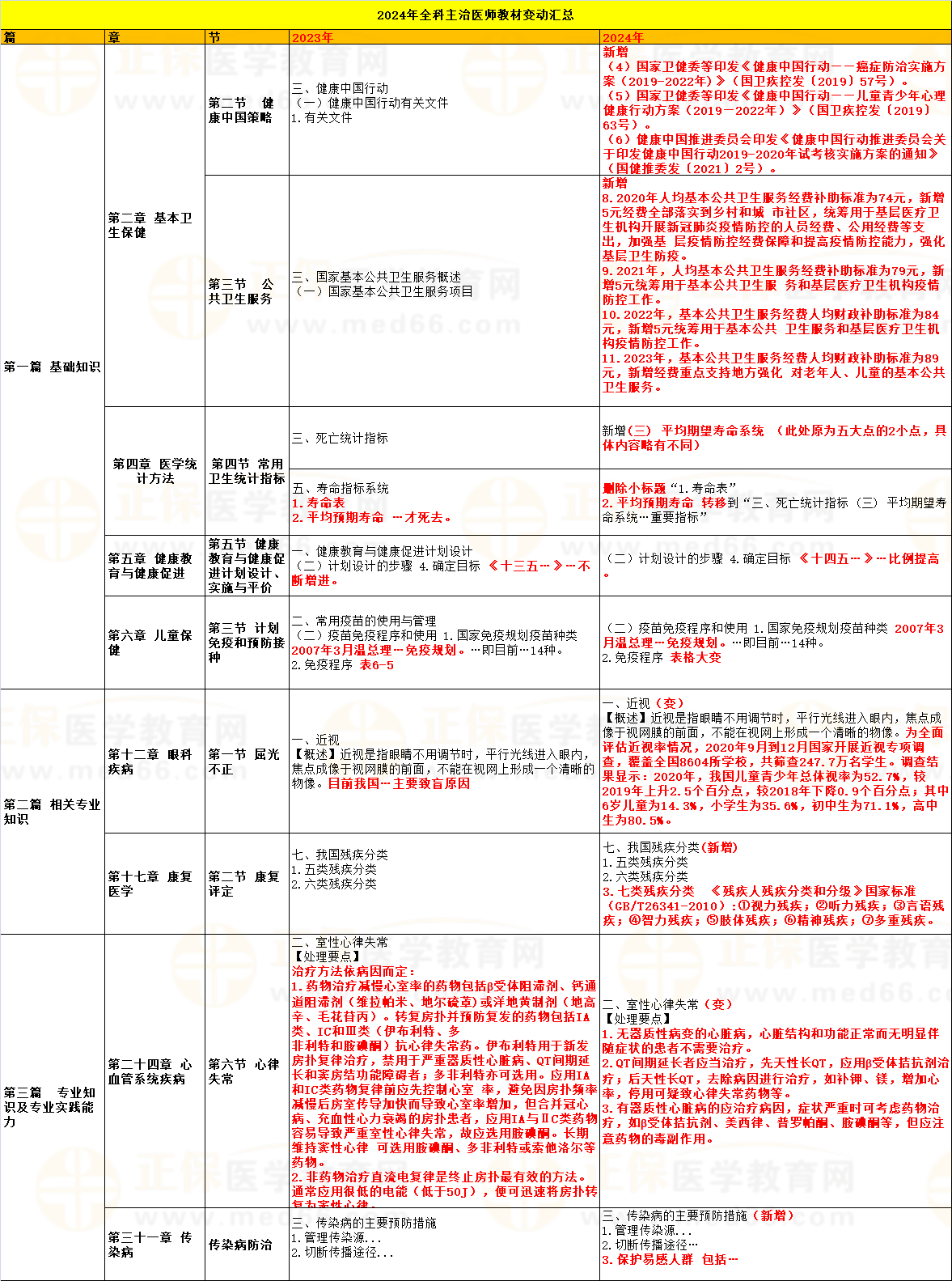 2024年全科主治醫(yī)師考試教材已經(jīng)公布了,經(jīng)醫(yī)學教育網(wǎng)專業(yè)教務校對發(fā)現(xiàn)有部分變動內(nèi)容,具體變動內(nèi)容如下 :