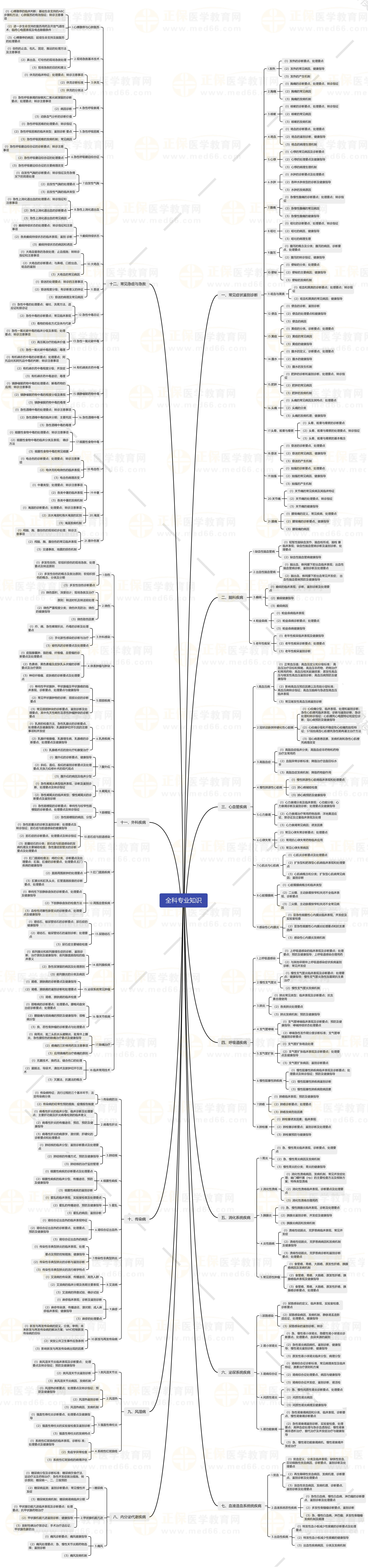 全科主治醫(yī)師考試實行全國統(tǒng)一組織、統(tǒng)一考試時間、統(tǒng)一考試大綱、統(tǒng)一考試命題、統(tǒng)一合格標準的考試制度,原則上每年進行一次。2024年全科主治醫(yī)師考試新考期已經開始了,為了幫助各位考生理清考試知識點脈絡,更有針對性復習,醫(yī)學教育網為大家整理全科主治醫(yī)師《專業(yè)知識》知識點地圖如下: