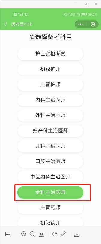 第二步:進(jìn)入小程序,選擇您的備考科目,“全科主治醫(yī)師”